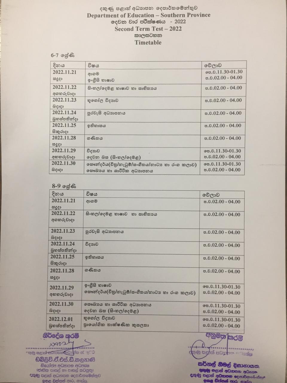 දකුණු පළාතේ පාසල්වල 2022 වර්ෂයේ දෙවන වාර විභාගය දෙසැම්බර් මස 12වන දා ආරම්භ වේ.